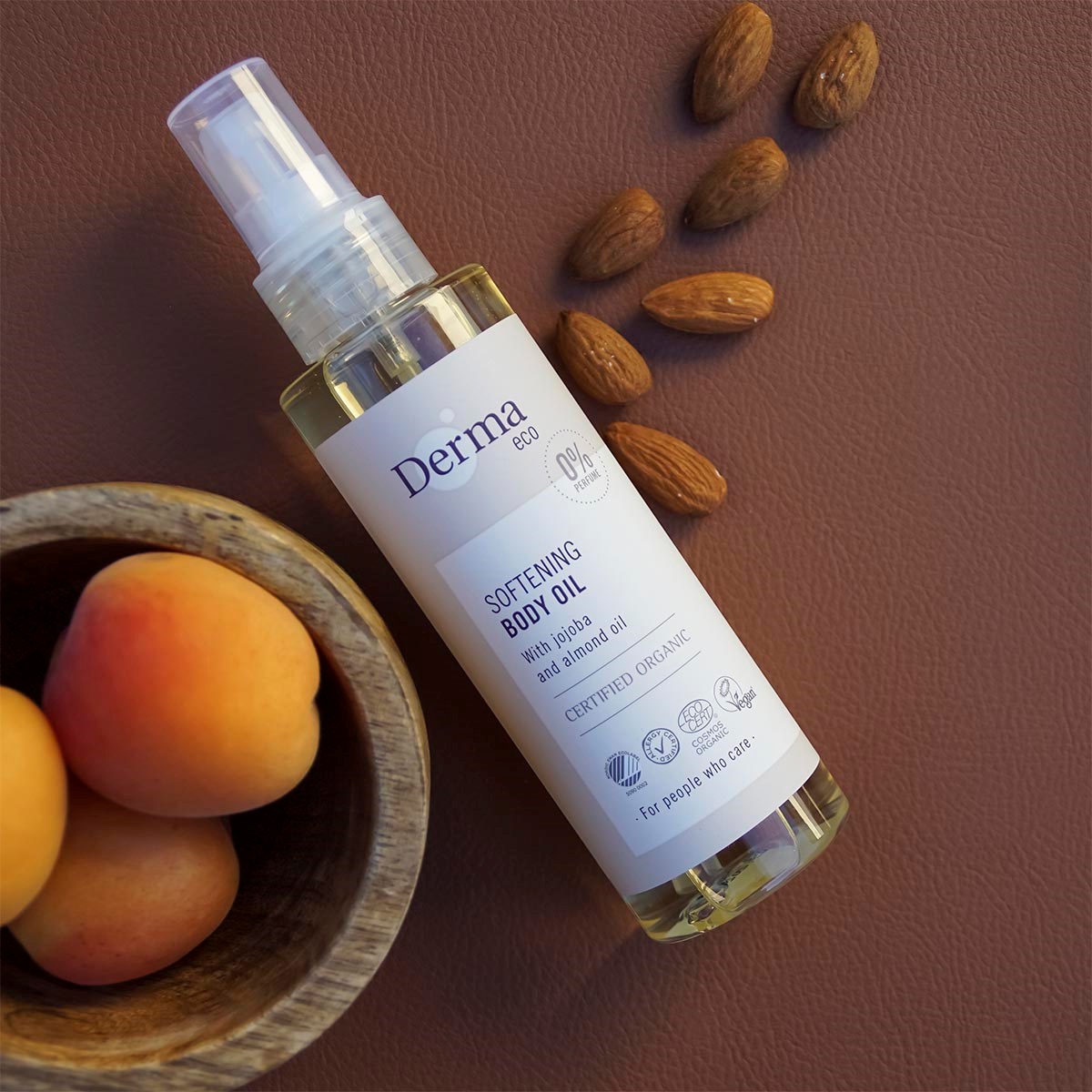 Derma Eco Body Oil er en nærende og blødgørende kropsolie med E-vitamin og økologisk jojoba-, mandel- og abrikoskerneolie.